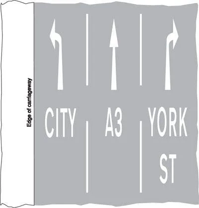 At certain junctions, like roundabouts or motorway exits, you may notice large white arrows, road names, or major destinations painted on the lanes.